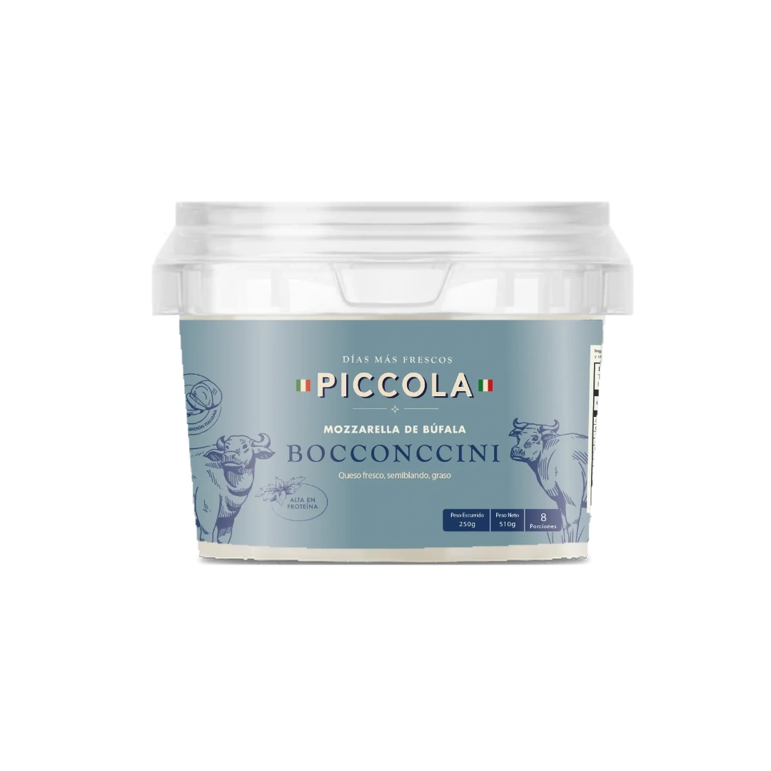 BOCCONCCINI, Un poco más pequeña que la mozzarella ovolini. Es del tamaño de un bocado (bocca), lo que da origen a su nombre.